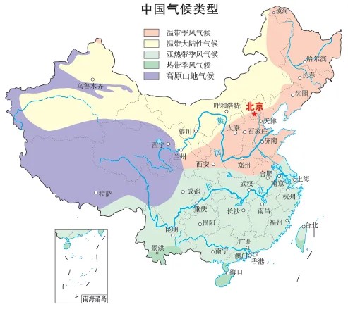 - 温度带/五带:大部分地区位于北温带,小部分地区位于热带,无寒带.